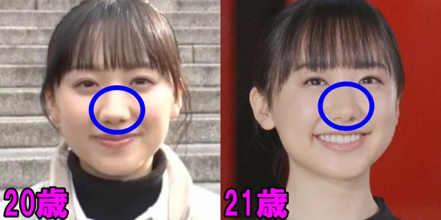 鼻の整形では「鼻プロテーゼ」や「鼻尖形成術」がありますが、17歳・18歳・21歳画像が同様であることから、鼻先は変わっていないと推測できます。