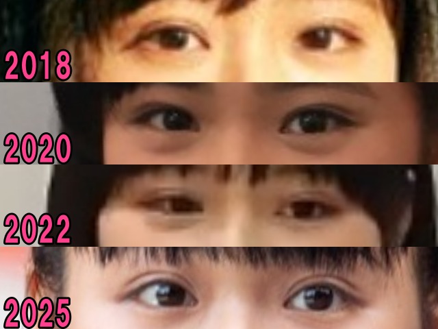 目の変化については、2013年~2025年まで年度毎の顔の変化でも見てきましたが、ポイントとなる年度を選定し、拡大して見ていきます。