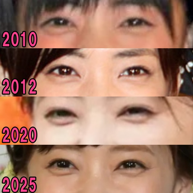 倉科さんの場合は、デビューの頃から現在までの代表的な目の比較画像で検証しましたが、蒙古ヒダ自体が無かったと判断できます。