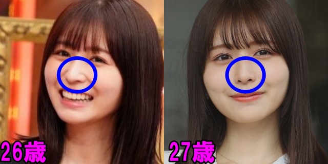 前年との比較画像では、目元も同じで鼻も変わっていません。